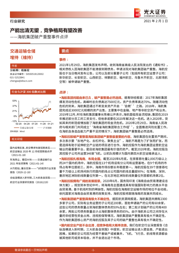 【光大证券】【20210201】交通运输仓储:海航集团破产重整事件点评-3页
