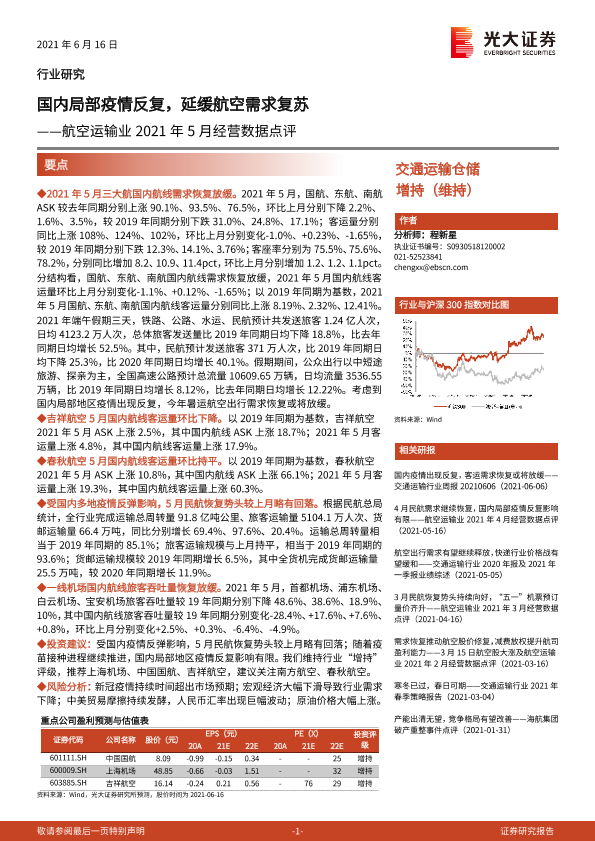 【光大证券】【20210616】航空运输业2021年5月经营数据点评-7页