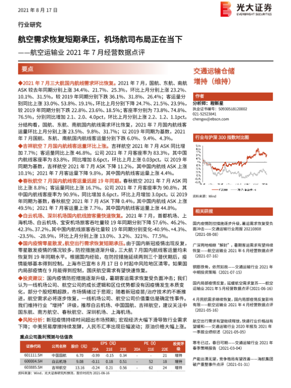 【光大证券】【20210817】航空运输业2021年7月经营数据点评-7页