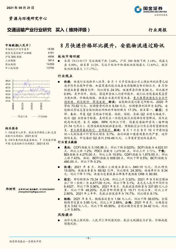 【国金证券】【20210921】8月快递价格环比提升,安能物流通过聆讯-14页