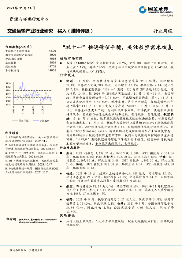 【国金证券】【20211114】“双十一”快递峰值平稳,关注航空需求恢复-14页