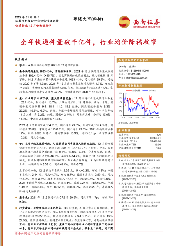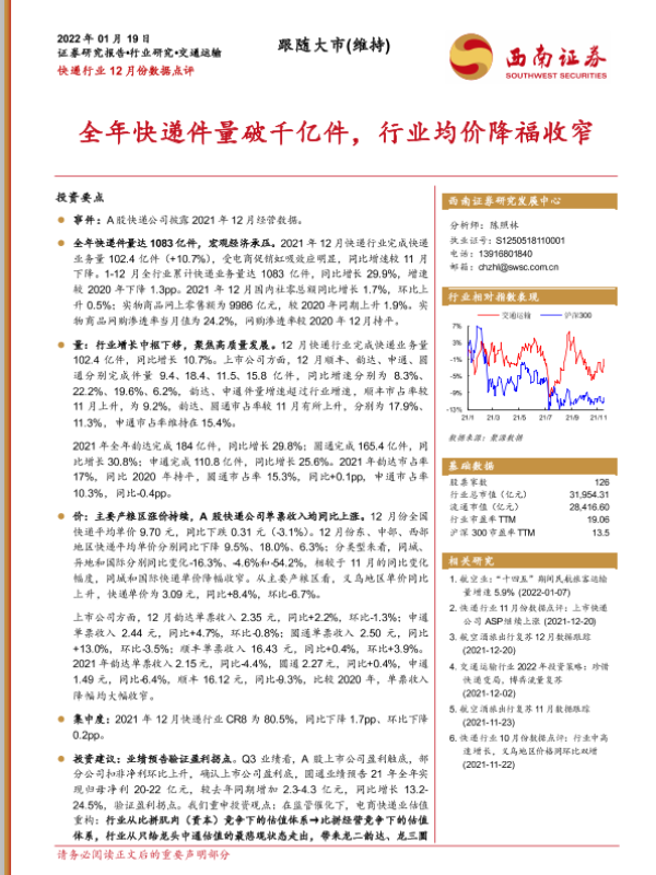 【西南证券】【20220119】快递行业12月份数据点评-12页