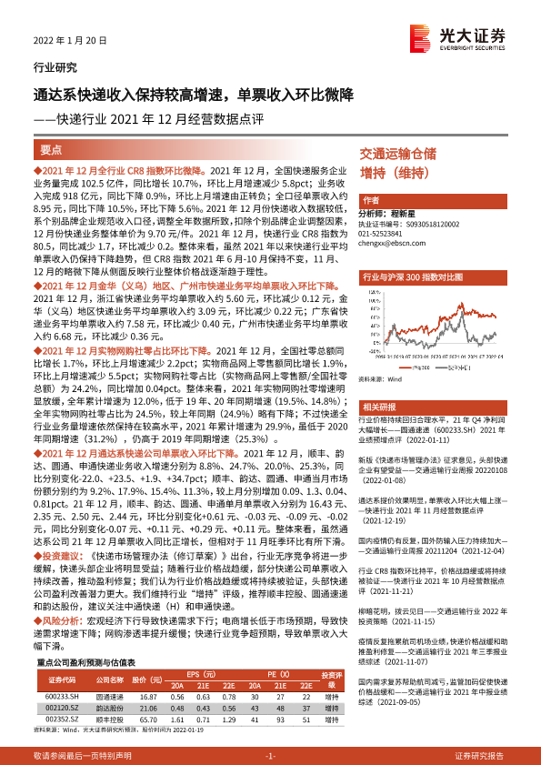 【光大证券】【20220120】快递行业2021年12月经营数据点评-7页