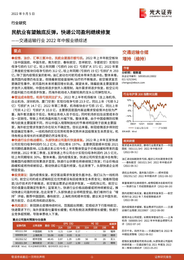 光大证券 交通运输仓储邮政 2022年 PDF 1.07 MB