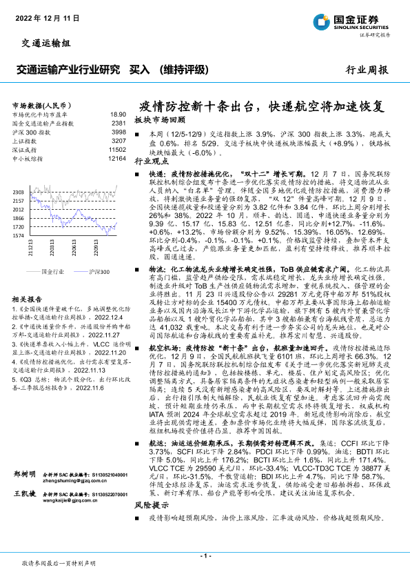 【国金证券】【20221211】交通运输产业行业研究:疫情防控新十条出台,快递航空将加速恢复-14页