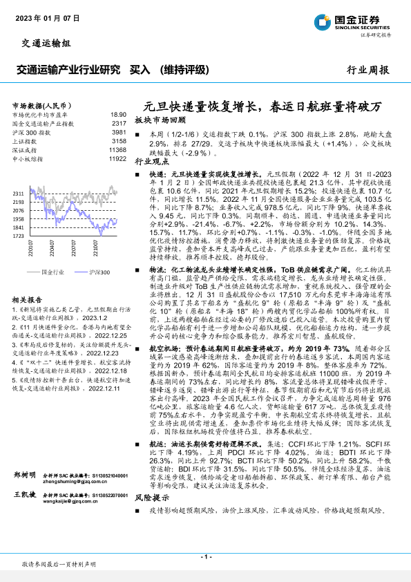 【国金证券】【20230107】元旦快递量恢复增长,春运日航班量将破万-14页
