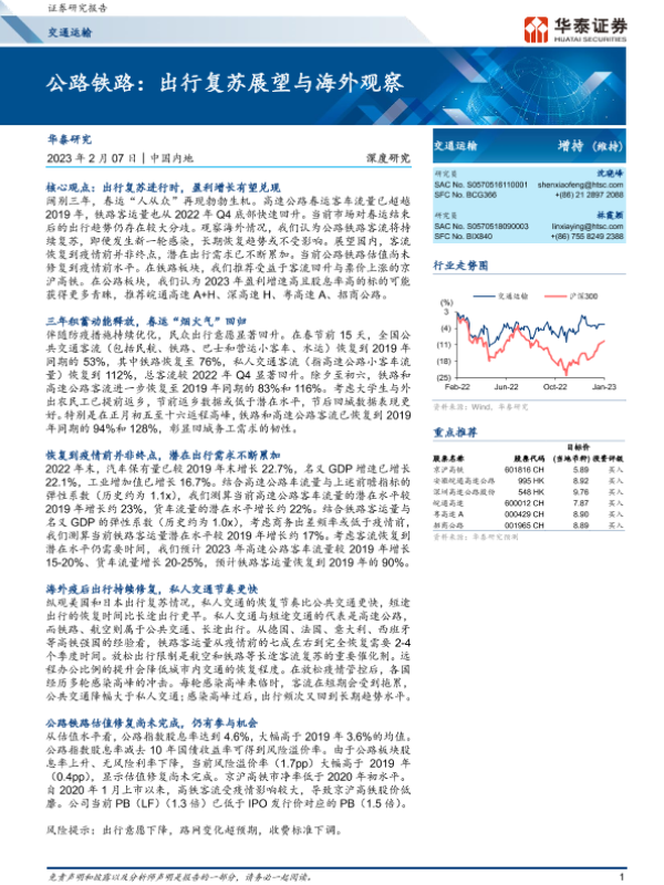 【华泰证券】【20230207】公路铁路:出行复苏展望与海外观察-30页