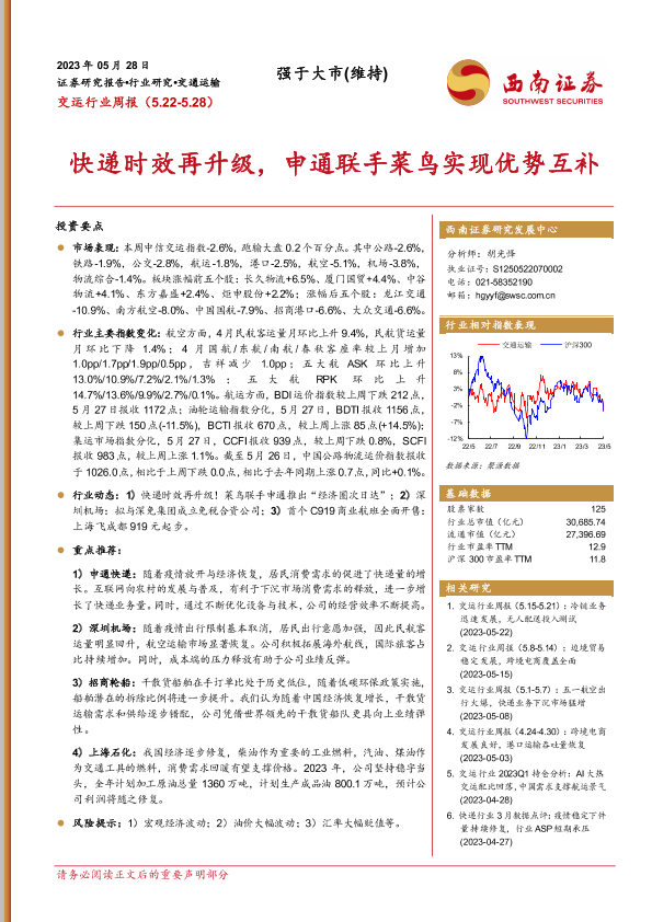 【西南证券】【20230528】交运行业周报:快递时效再升级,申通联手菜鸟实现优势互补-19页