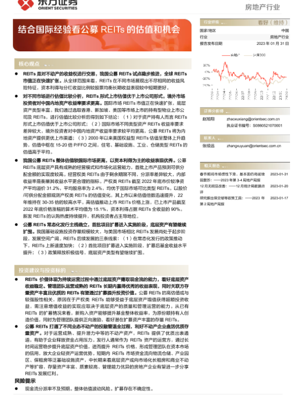 【东方证券】【20230131】房地产行业深度报告:结合国际经验看公募REITs的估值和机会-32页