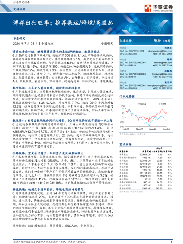 【华泰证券】【20240703】博弈出行旺季;推荐集运 跨境 高股息-20页