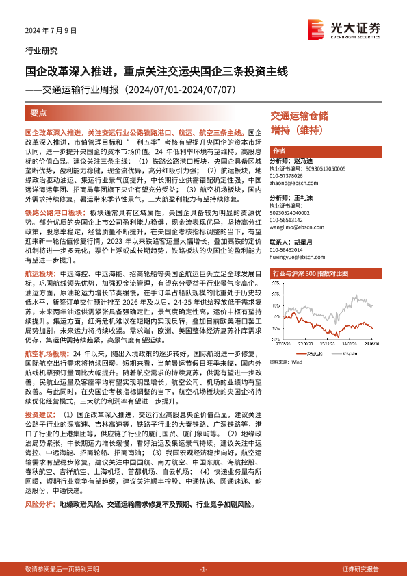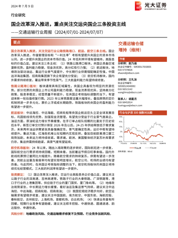 【光大证券】【20240709】交通运输行业周报:国企改革深入推进,重点关注交运央国企三条投资主线-20页