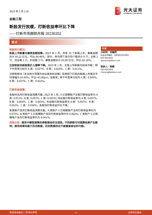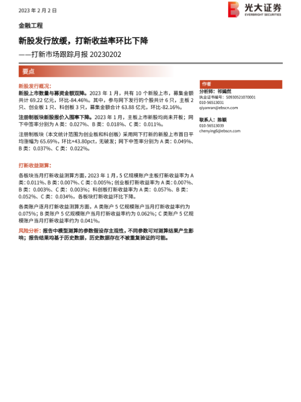 【光大证券】【20230202】打新市场跟踪月报:新股发行放缓,打新收益率环比下降-16页