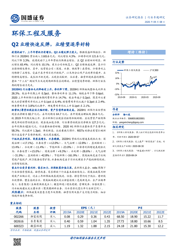 【国盛证券】【20200908】环保工程及服务行业专题研究:Q2业绩快速反弹,业绩望逐季好转-25页