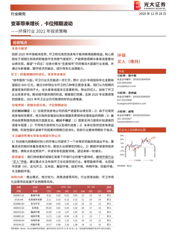 【光大证券】【20201228】环保行业2021年投资策略:变革带来增长,卡位预期波动-29页