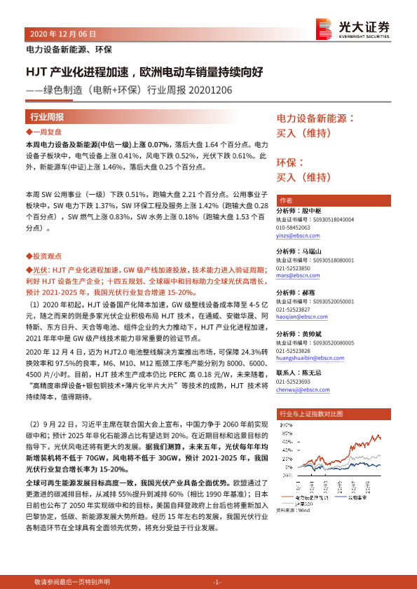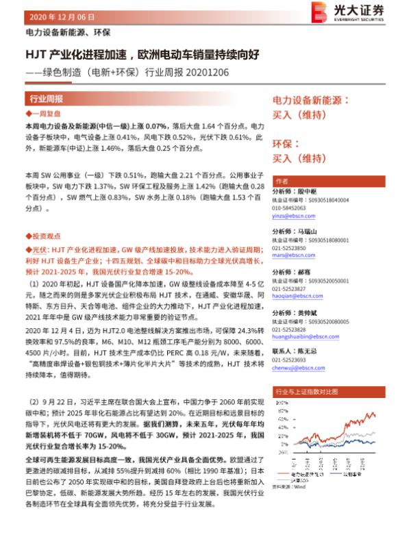 【光大证券】【20201206】绿色制造(电新+环保)行业周报:HJT产业化进程加速,欧洲电动车销量持续向好-39页