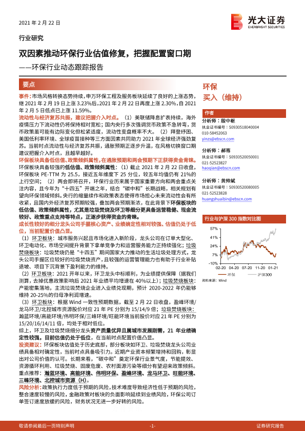 【光大证券】【20210222】双因素推动环保行业估值修复,把握配置窗口期-2页