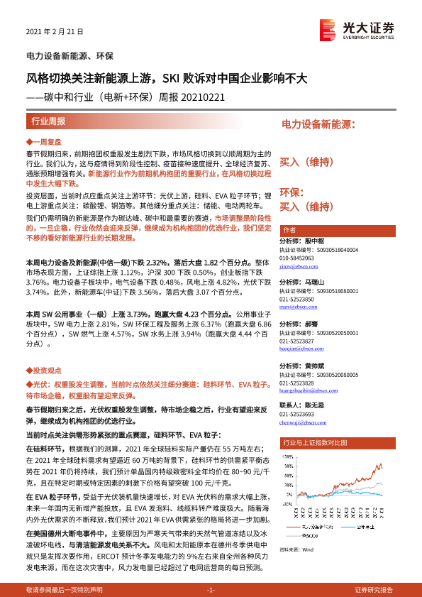 【光大证券】【20210221】碳中和行业(电新+环保)周报:风格切换关注新能源上游,SKI败诉对中国企业影响不大-44页