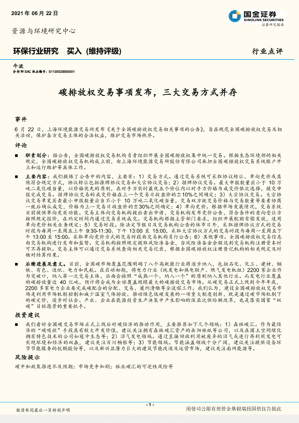 【国金证券】【20210622】环保行业研究:碳排放权交易事项发布,三大交易方式并存-3页