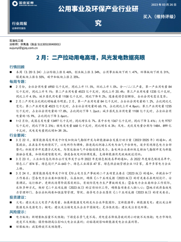 【国金证券】【20230326】2月:二产拉动用电高增,风光发电数据亮眼-17页