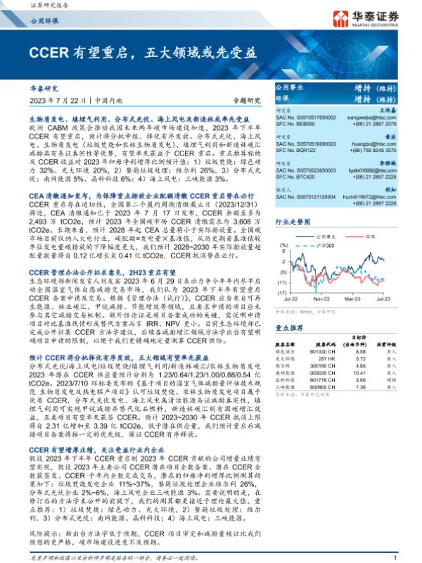 【华泰证券】【20230722】公用环保专题研究:CCER有望重启,五大领域或先受益-27页