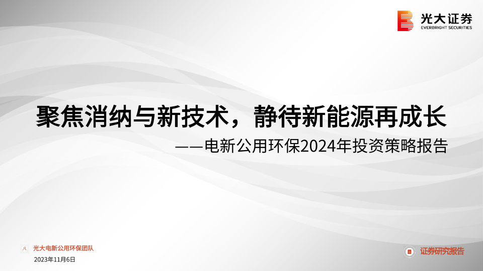 【光大证券】【20231106】电新公用环保2024年投资策略报告:聚焦消纳与新技术,静待新能源再成长-50页