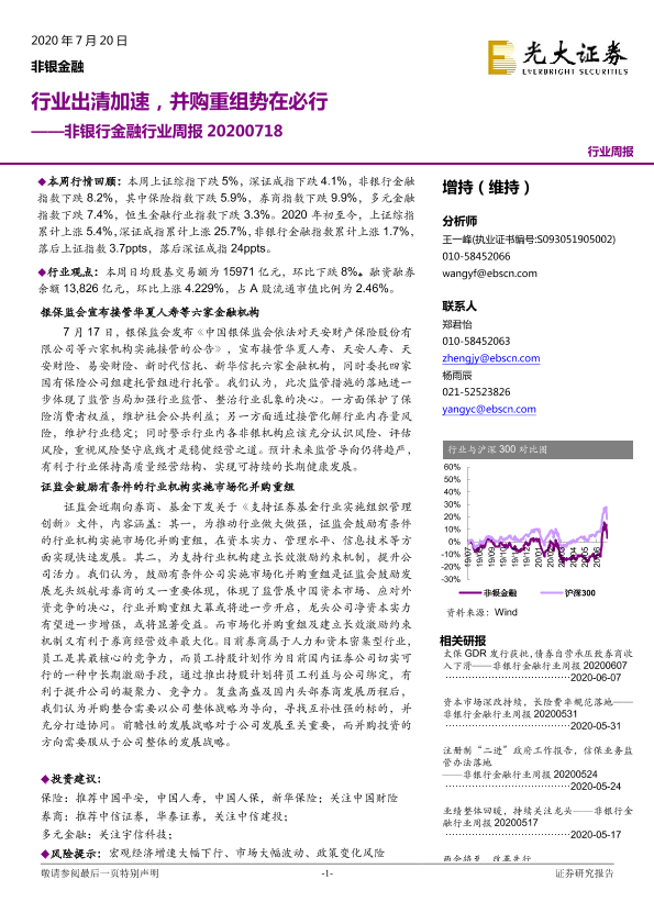 【光大证券】【20200720】非银行金融行业周报:行业出清加速,并购重组势在必行-16页