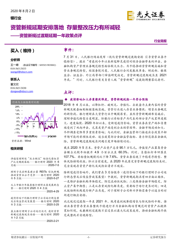 【光大证券】【20200802】资管新规过渡期延期一年政策点评:存量整改压力有所减轻-5页