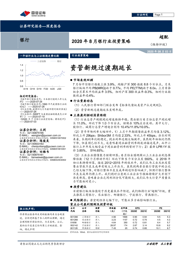 【国信证券】【20200803】2020年8月银行业投资策略:资管新规过渡期延长-8页
