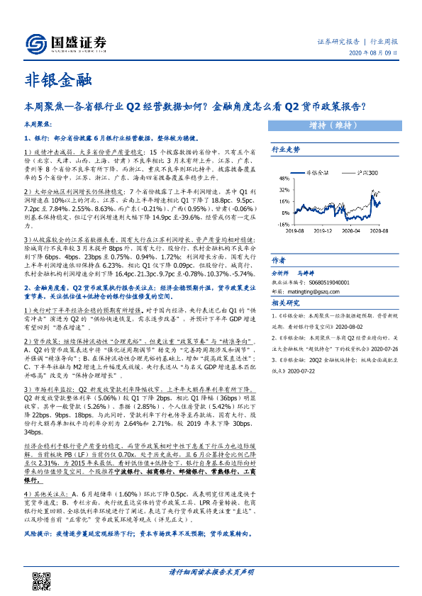 【国盛证券】【20200809】非银金融本周聚焦:各省银行业Q2经营数据如何?金融角度怎么看Q2货币政策报告?-16页