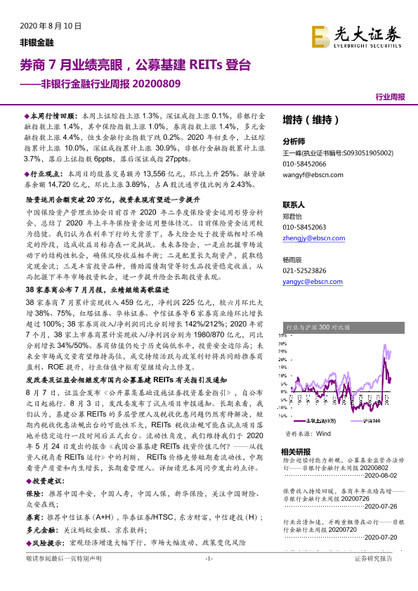 【光大证券】【20200810】非银行金融行业周报:券商7月业绩亮眼,公募基建REITs登台-14页