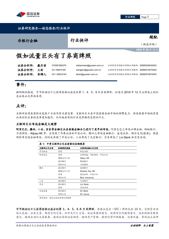 【国信证券】【20200813】非银行金融行业快评:假如流量巨头有了券商牌照-8页