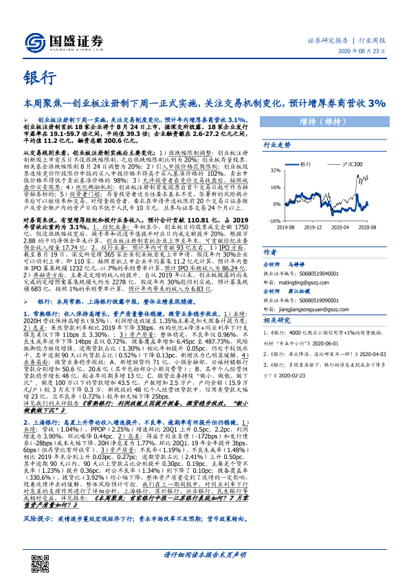 【国盛证券】【20200823】银行本周聚焦:创业板注册制下周一正式实施,关注交易机制变化-15页