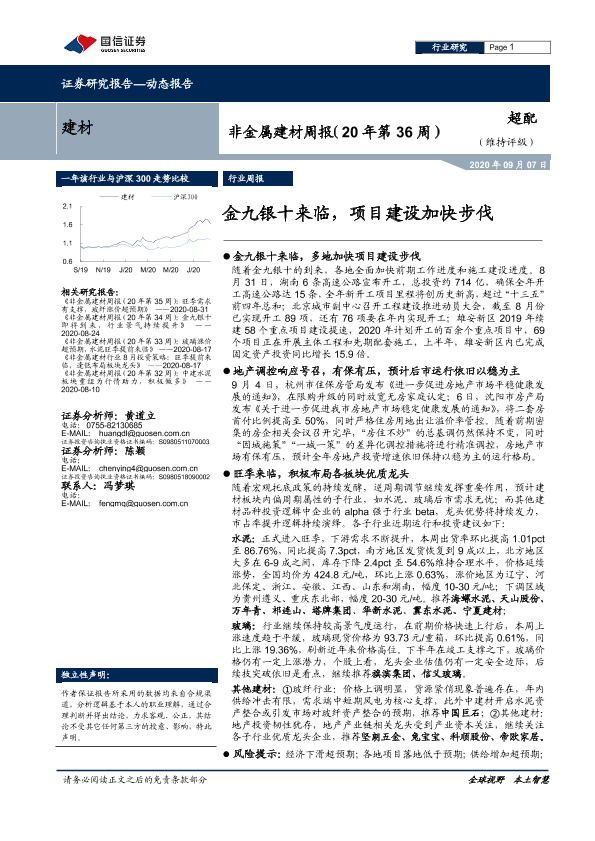 【国信证券】【20200907】非金属建材周报:金九银十来临,项目建设加快步伐-17页