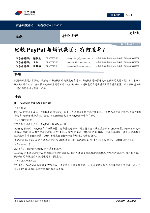 【国信证券】【20200921】比较PayPal与蚂蚁集团:有何差异?-6页