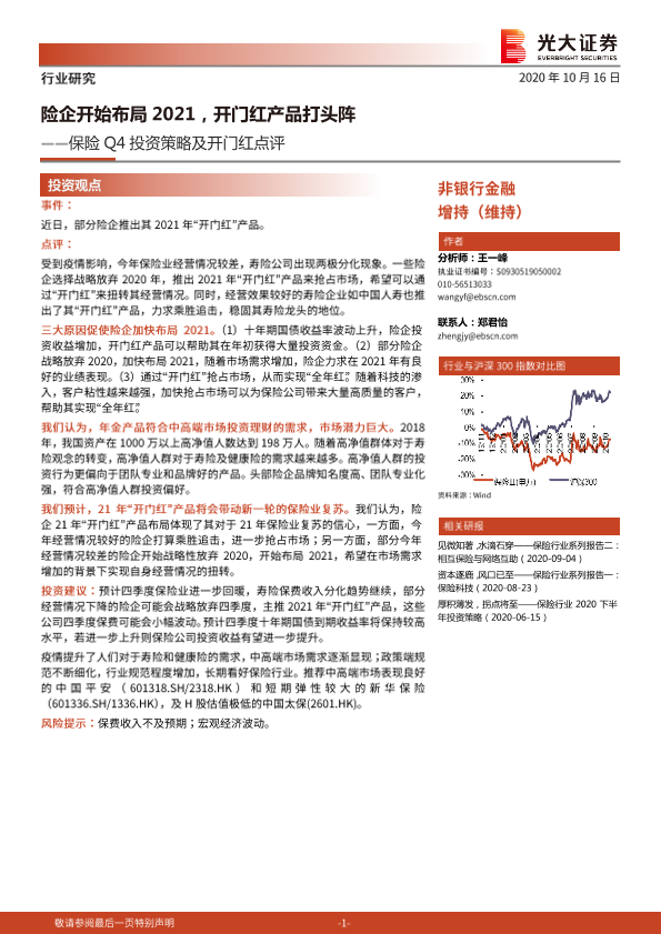 【光大证券】【20201016】保险Q4投资策略及开门红点评:险企开始布局2021,开门红产品打头阵-10页