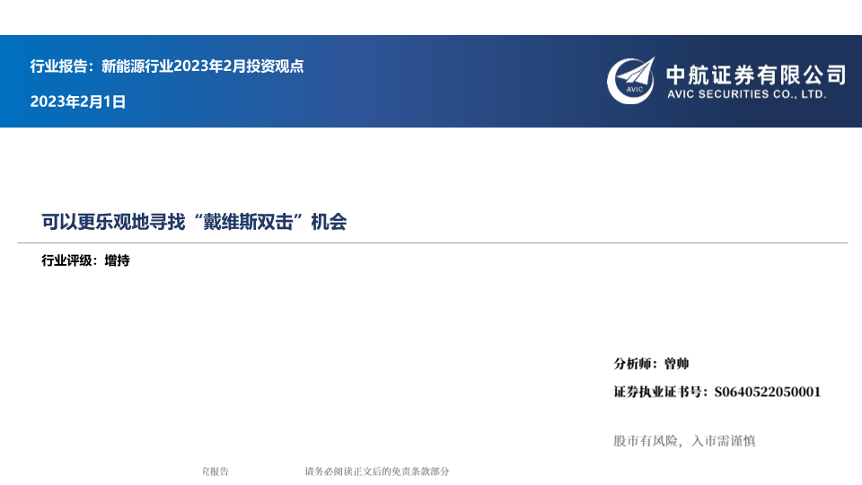 【中航证券】【20230201】新能源行业2023年2月投资观点:可以更乐观地寻找“戴维斯双击”机会-20页