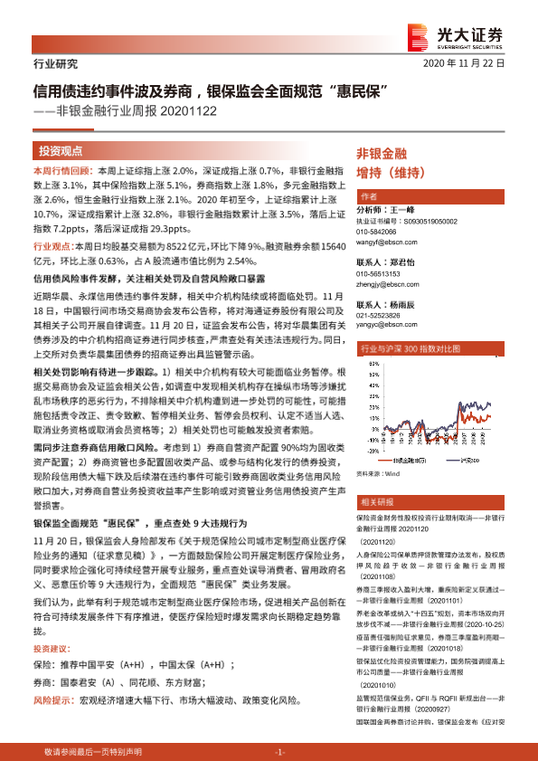 【光大证券】【20201122】非银金融行业周报:信用债违约事件波及券商,银保监会全面规范‘惠民保’-12页