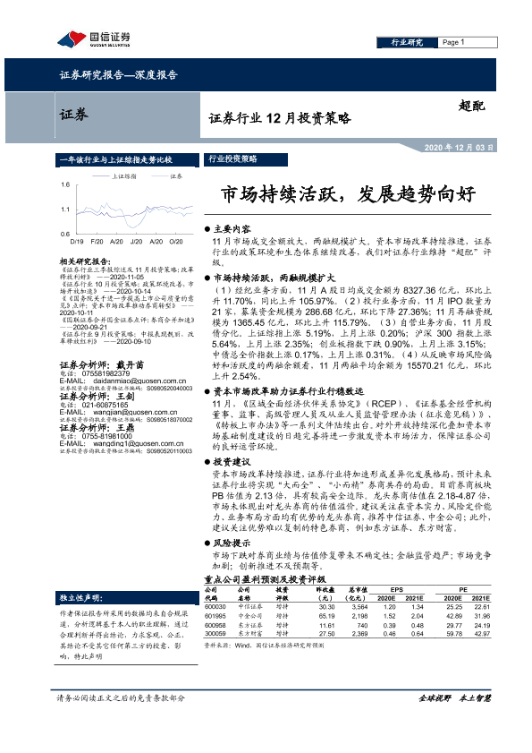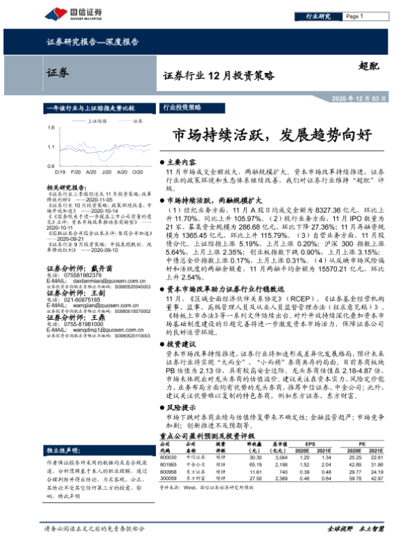 【国信证券】【20201203】证券行业12月投资策略:市场持续活跃,发展趋势向好-8页