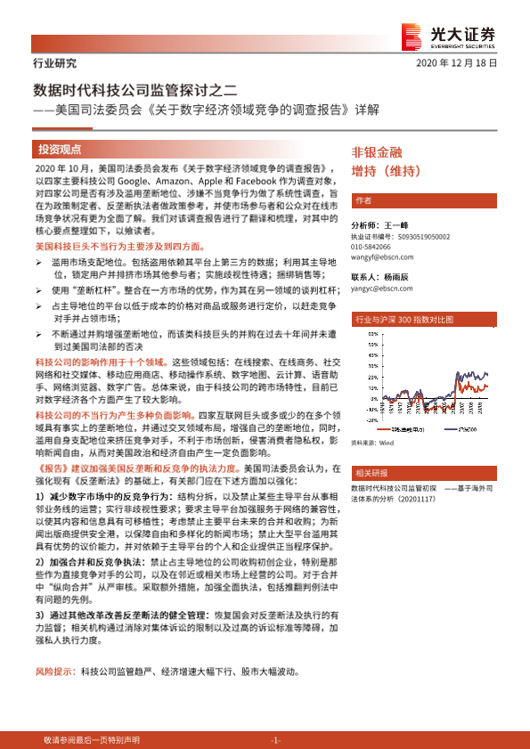 【光大证券】【20201218】数据时代科技公司监管探讨之二:美国司法委员会《关于数字经济领域竞争的调查报告》详解-15页