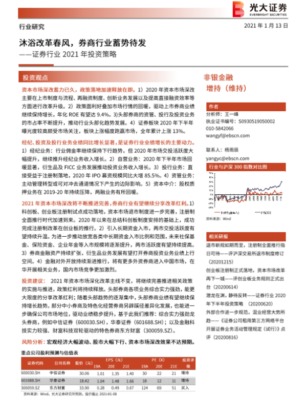【光大证券】【20210113】证券行业2021年投资策略:沐浴改革春风,券商行业蓄势待发-29页