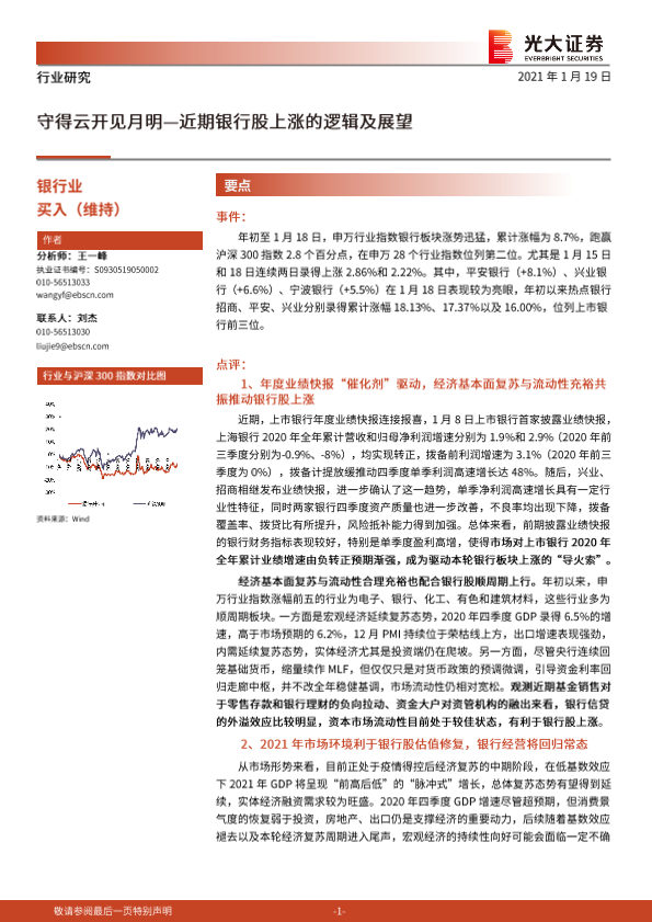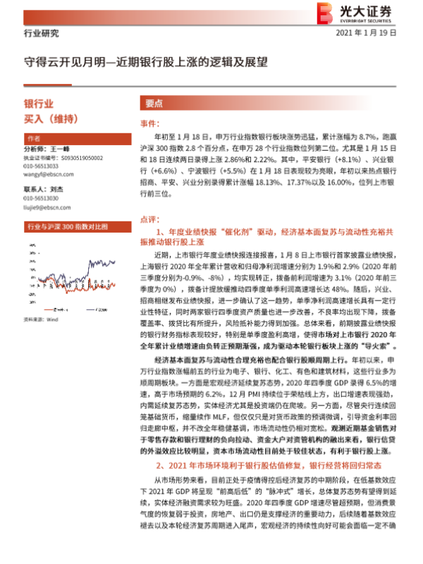 【光大证券】【20210119】银行业:守得云开见月明-近期银行股上涨的逻辑与展望-6页