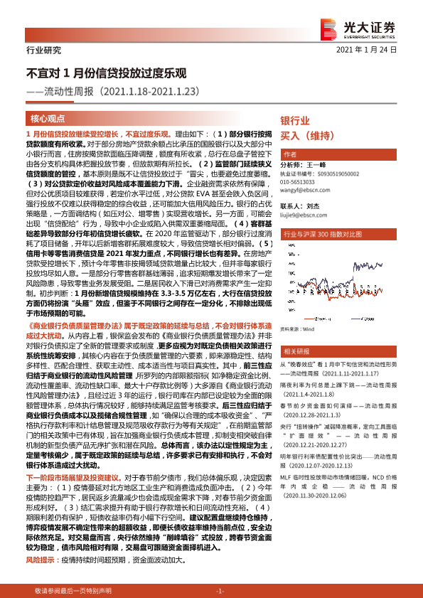 【光大证券】【20210124】银行业流动性周报:不宜对1月份信贷投放过度乐观-9页