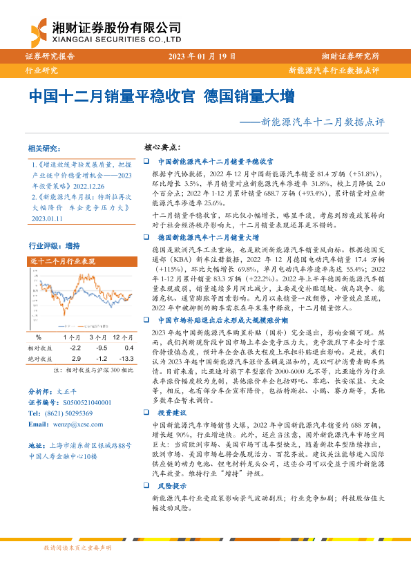 【湘财证券】【20230119】新能源汽车行业十二月数据点评:中国十二月销量平稳收官,德国销量大增-17页