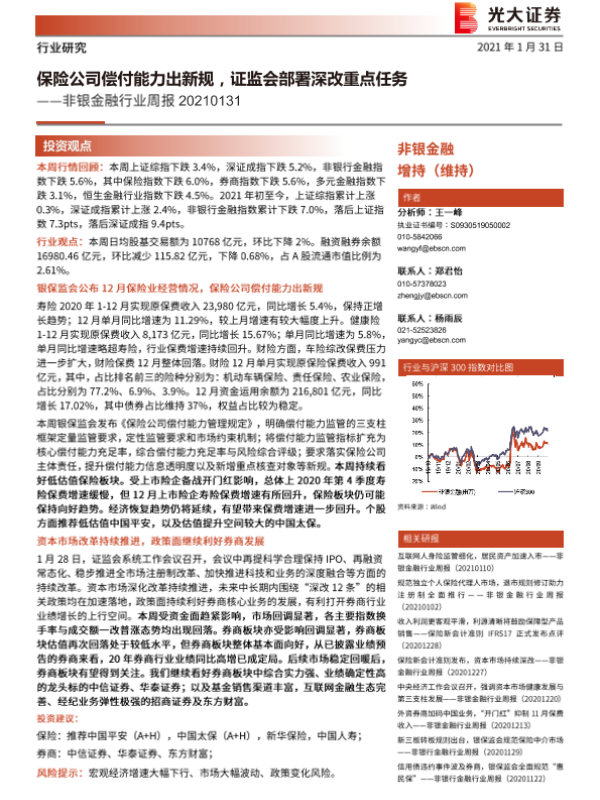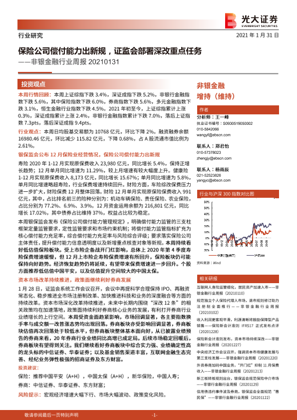 【光大证券】【20210131】非银金融行业周报:保险公司偿付能力出新规,证监会部署深改重点任务-14页