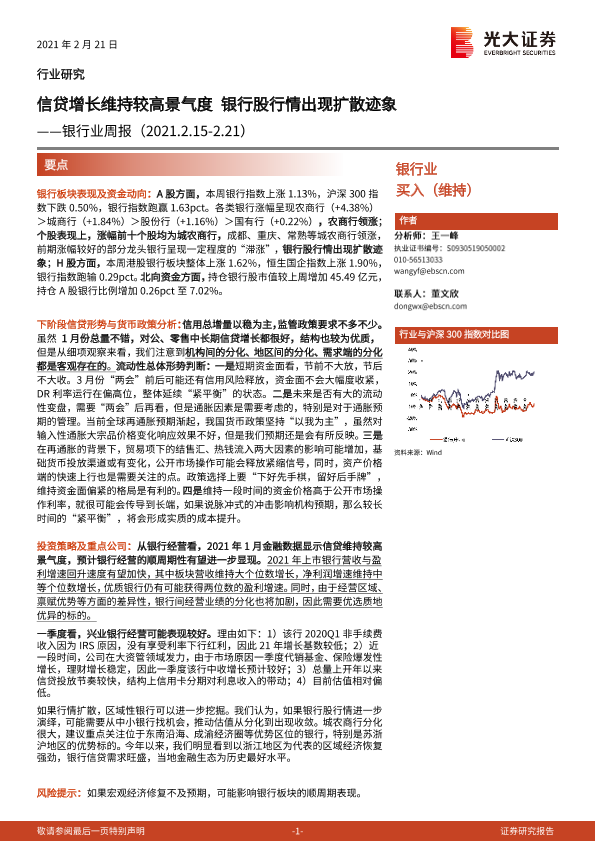 【光大证券】【20210221】银行业周报:信贷增长维持较高景气度 银行股行情出现扩散迹象-12页