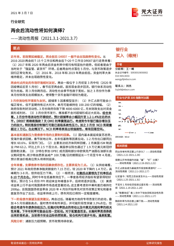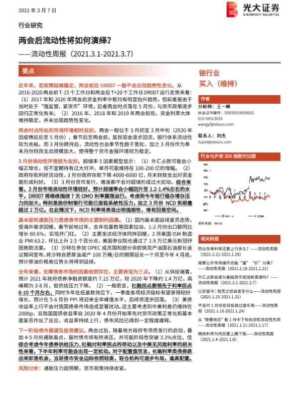 【光大证券】【20210307】银行业流动性周报:两会后流动性将如何演绎?-9页
