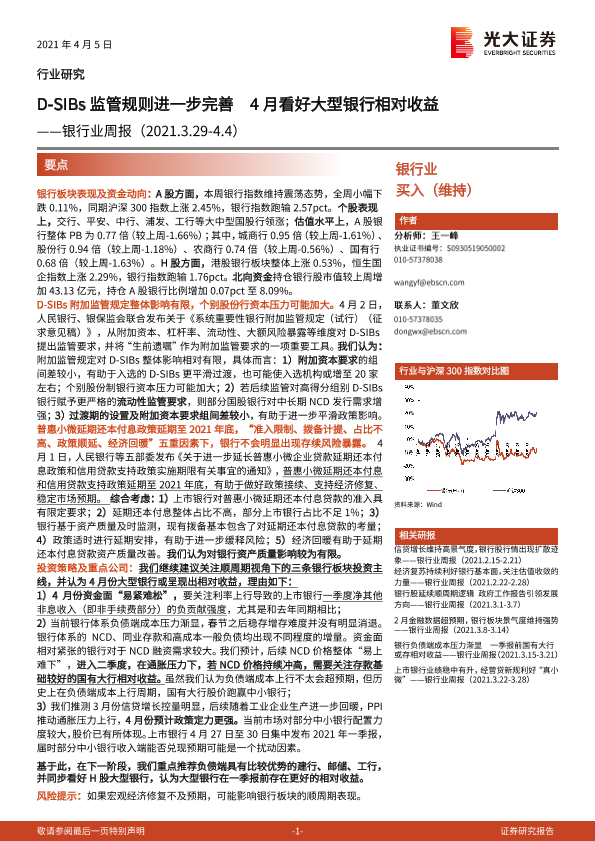 【光大证券】【20210405】D-SIBs监管规则进一步完善 4月看好大型银行相对收益-13页