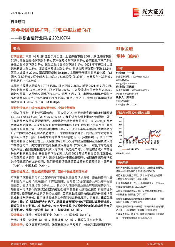 【光大证券】【20210704】非银金融行业周报:基金投顾资格扩容,非银中报业绩向好-10页