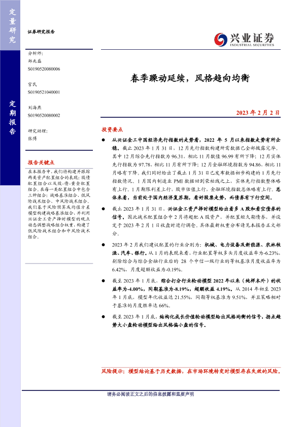 【兴业证券】【20230202】春季躁动延续,风格趋向均衡-27页