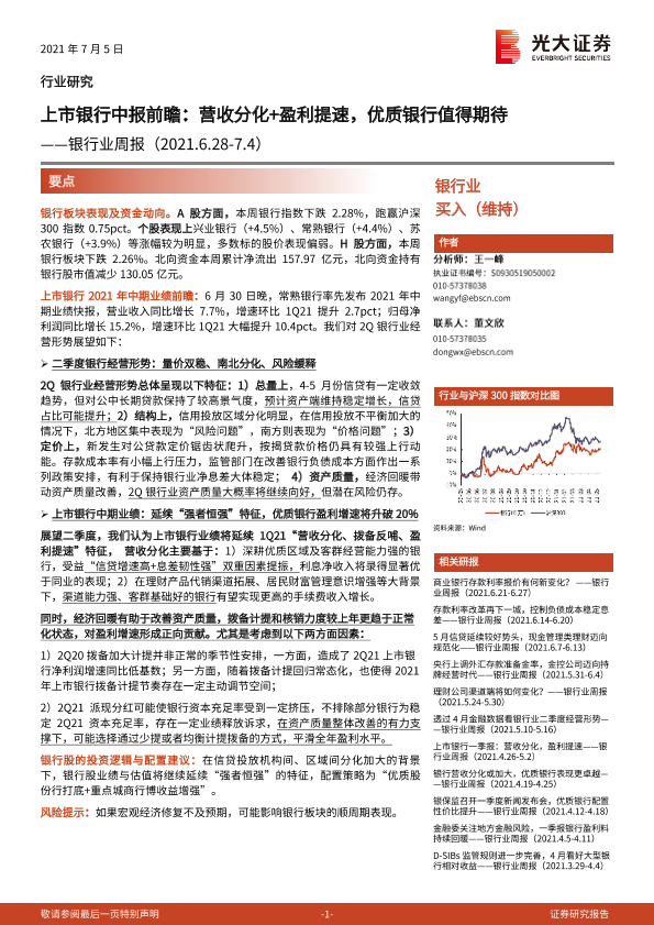 【光大证券】【20210705】上市银行中报前瞻:营收分化+盈利提速,优质银行值得期待-17页